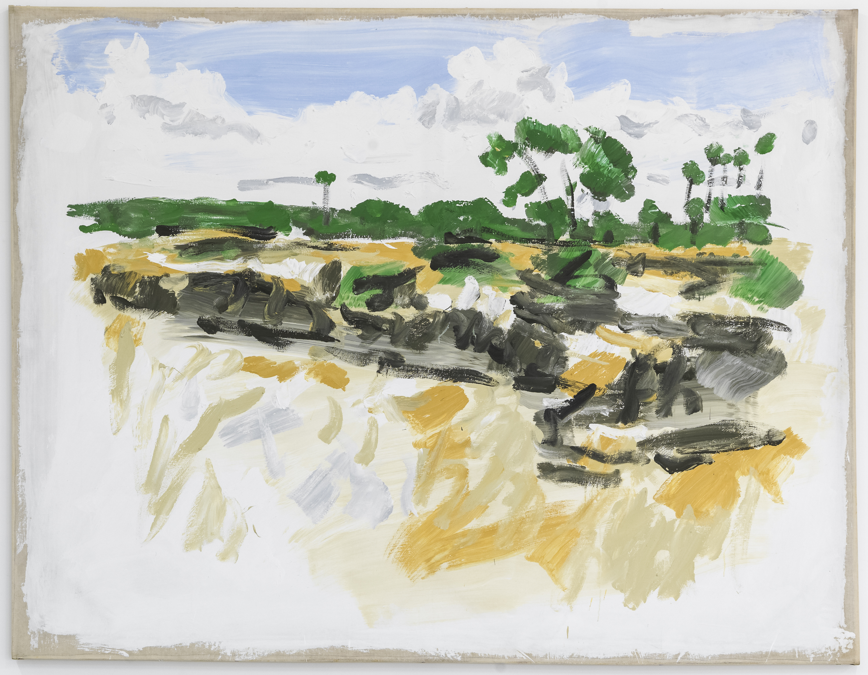 After exhibiting geometric sculptures and conceptual photographs, Christian Lindow began to paint in an illustrative style. Before long, his paint thickened, became more gestural, and his motifs became indistinguishable from brisk, broad brushstrokes that characterize the overall architecture of his paintings. While the artist’s output from 1977 onward seems to fall squarely within the then-dominant currents of Germanic Neo-Expressionism, Lindow’s paintings sever the association we have come to take for granted between, on the one hand, the discernible intensity and speed of their execution and, on the other, the expression of the artist’s subjectivity. The vast majority of his paintings feature a single, central motif. Selected for their ubiquitous quality, they appear to us as readymade images. And even when he selects subjects that come from his immediate surroundings, such as his own recent figurative wooden sculptures, or his wife’s face, the quality (or lack thereof) of his reproductive treatment suggests an already mediated origin. —Fabrice Stroun