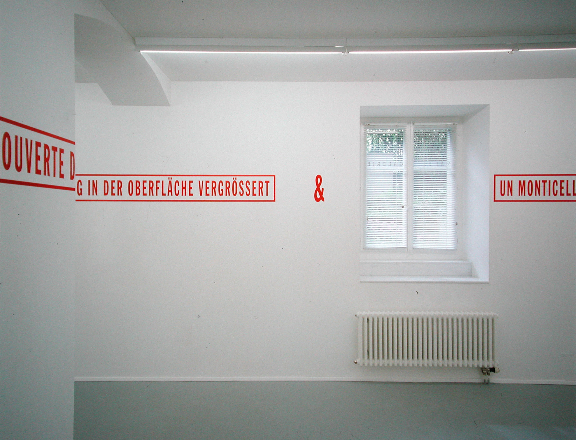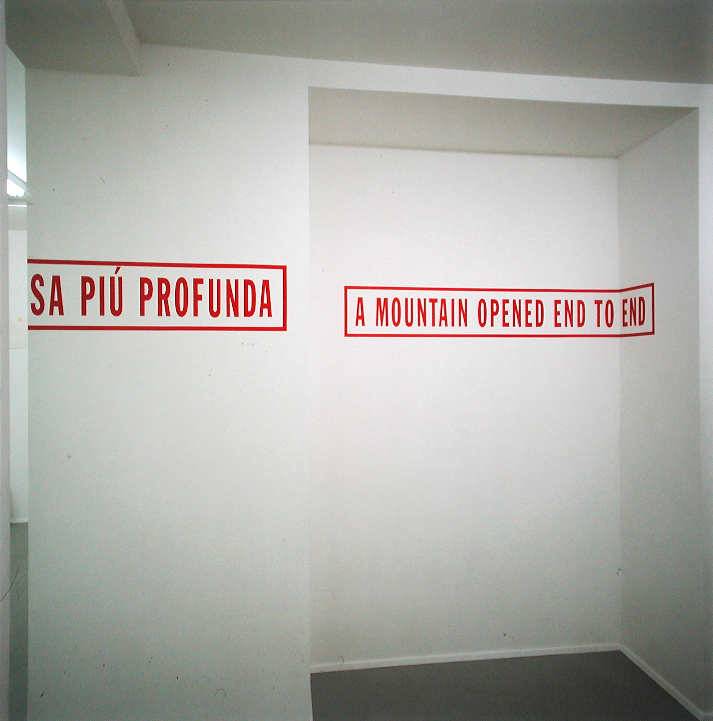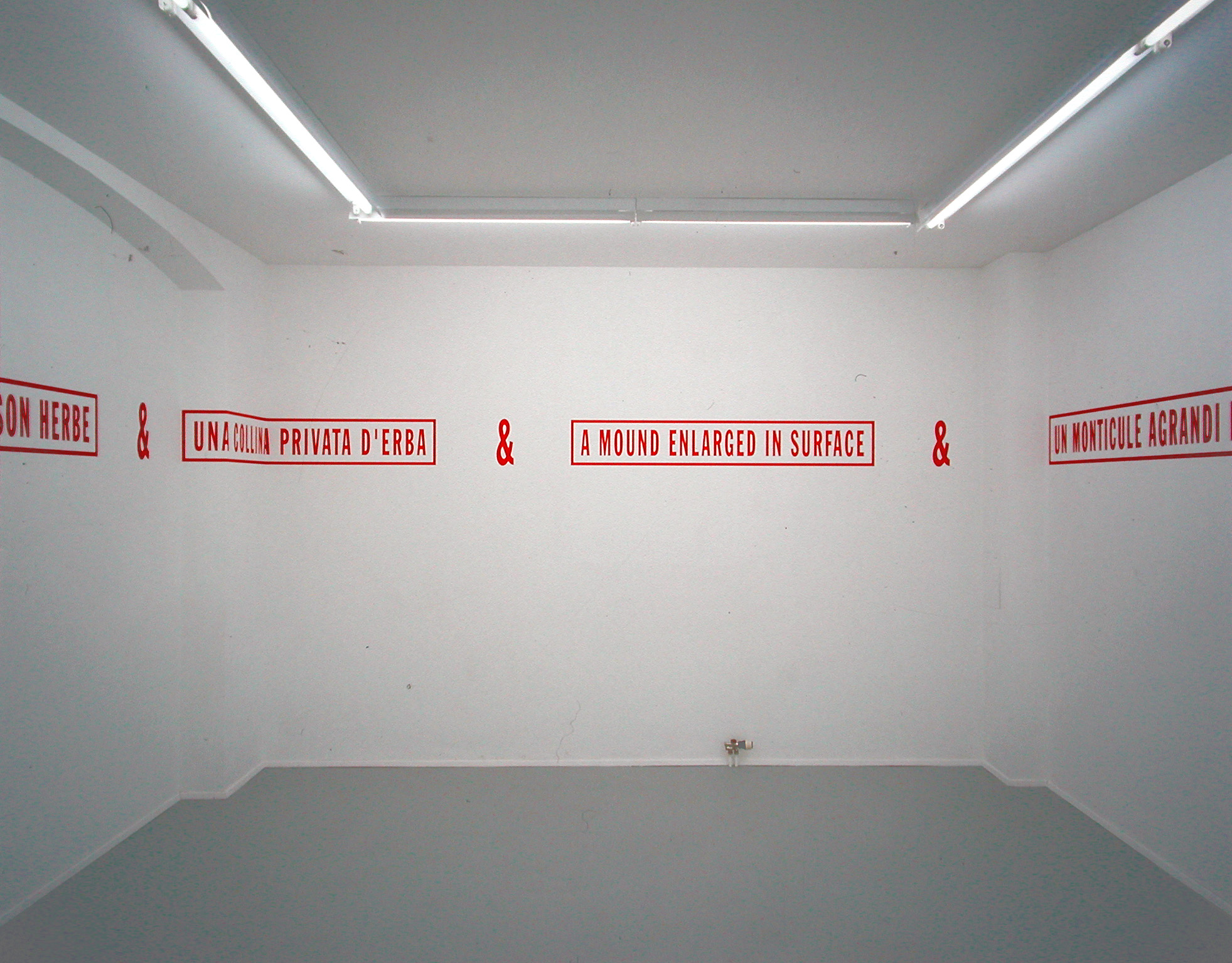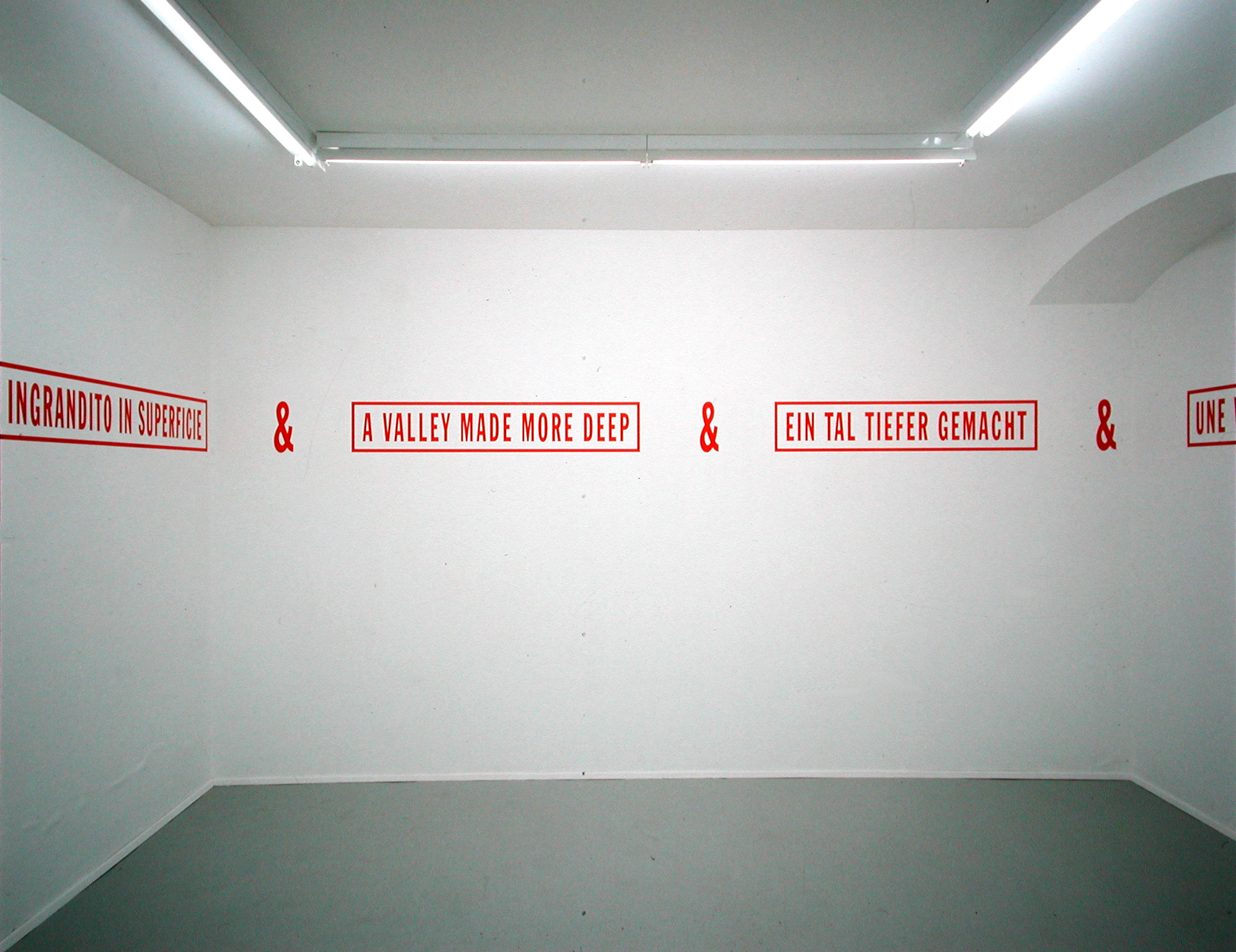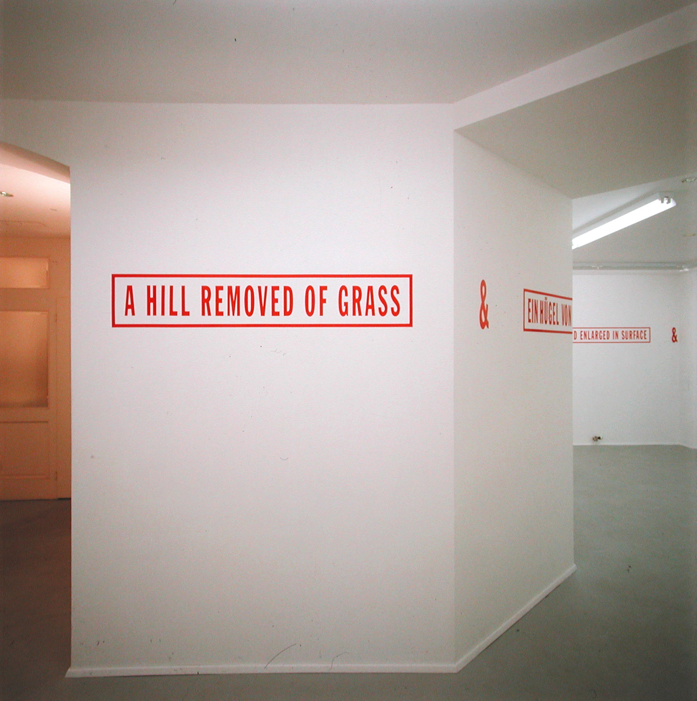 Lawrence Weiner was one of the world’s most influential contemporary artists. In his artistic practice, words and typographical signs replace the means ordinarily associated with artistic endeavor. Since 1968, he has devoted himself to the power of language, of written words that are cast or glued or painted on walls, on the ground or on entire buildings. The works take concrete shape in the context of their presentation: they generate mental spaces and relations in the minds of viewers; they are inseparable from their placement; words, place and viewer interact on location. —Axel Jablonski