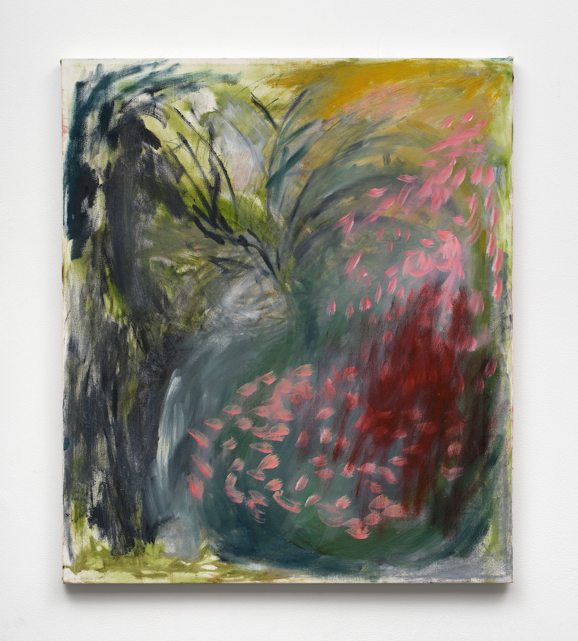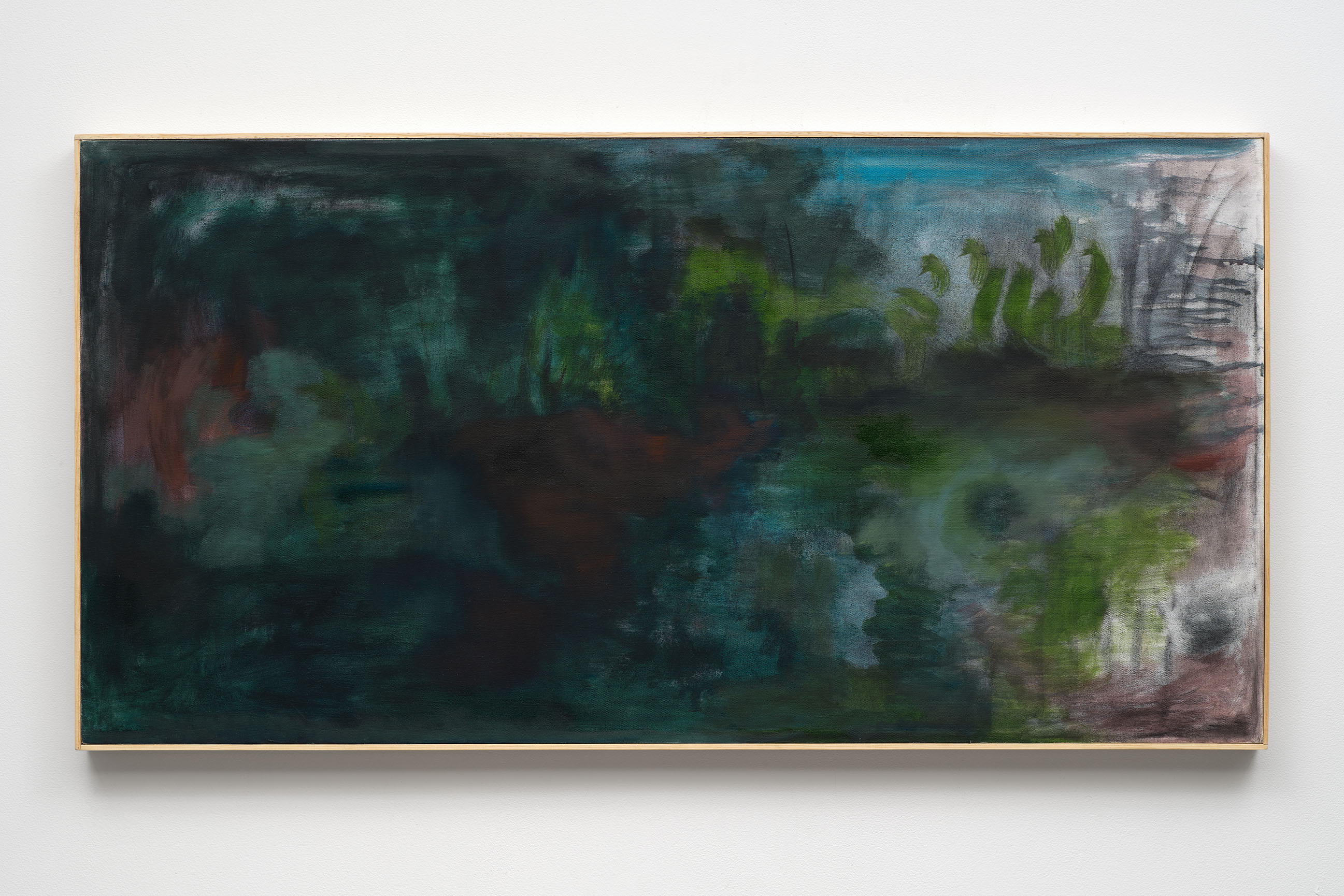 Speed, gas, evaporation and disappearance are conceptualized as embodiments of Capitalism in Zoe Koke’s paintings. The materiality and disintegration of nature become the primary subject in her work, pointing to our divorced connection with our surroundings as well as our own bodies and senses. The distance between abstraction and figura- tion is a realm to examine power. In Koke’s work, the notion of a land- scape isn’t fixed, rather it shifts, dissolves and recedes. Titles take their shape from simple observations as well as important cultural texts, mark- ers for overlapping histories of omission, destruction and regeneration.