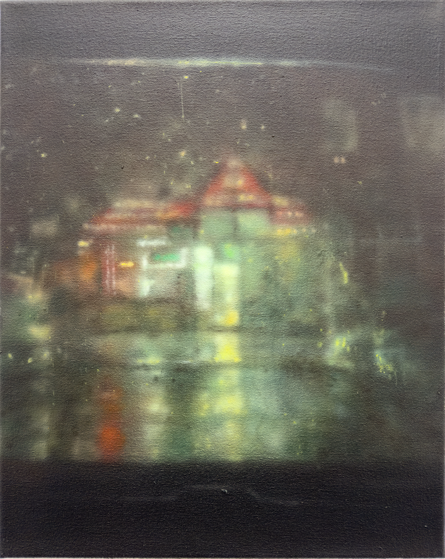 Leon Xu’s hazy painting Intermission evokes a feeling of universal nostalgia, a shared memory, a daydream that touches us like a thread of human interconnectedness. He captures the depth of transcience –in movement and memory. The scene is soft, melancholic, sentimental – a peaceful moment of being fully present. As a Chinese-born immigrant in the US, Leon describes dealing with a deeply embedded “immigrant mentality”, a compulsive mindset of restless working which requires Leon to actively learn to calm down and to process feelings and incidents.